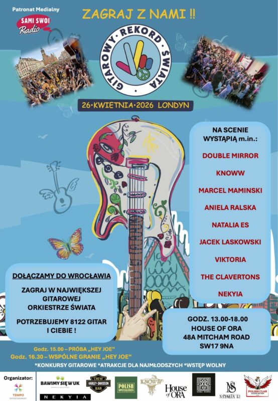 Wyjątkowe wydarzenie muzyczne, którego celem jest wsparcie próby pobicia Gitarowego Rekordu Guinnessa we Wrocławiu odbędzie się 26 kwietnia 2026 roku w House Of Ora w Londynie. To inicjatywa, która...